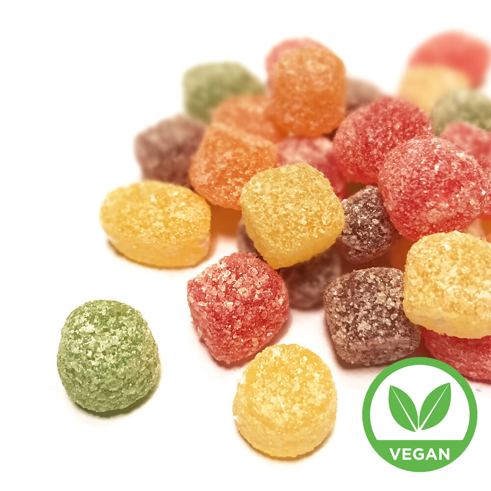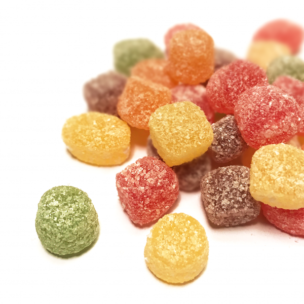 원재료명 및 함량: 설탕, 전화당시럽, 정제수, 옥수수전분(유전자 변형 옥수수 포함 가능성 있음), 포도당시럽, 구연산, 구연산칼슘, 포도주스농축, 사과주스농축, 배주스농축, 복숭아주스농축, 블랙커런트추출물, 당근추출물, 스피루리나추출물, 잇꽃추출물, 강황뿌리줄기추출물, 무농축액, 천연향료(레몬향, 포도향, 오렌지향, 체리향, 라임향), 젖산