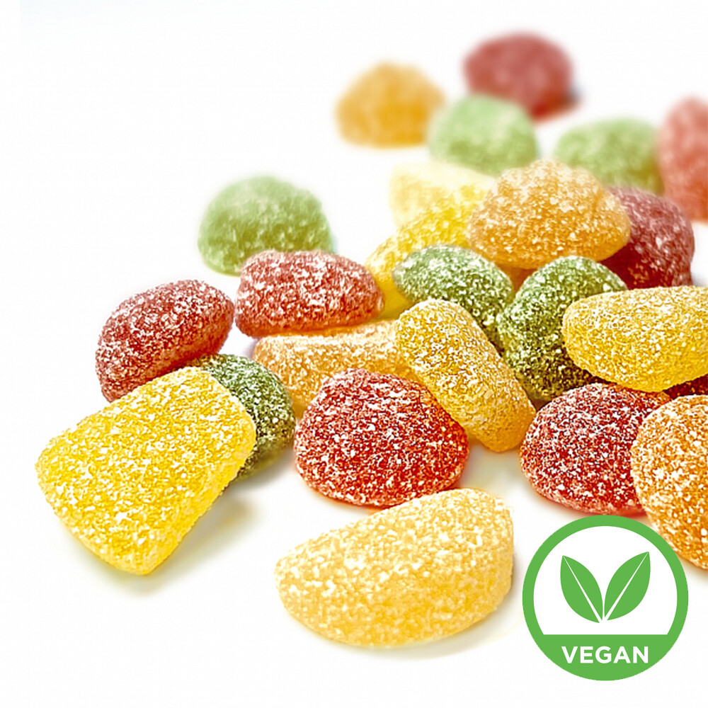 원재료명 및 함량: 설탕, 전화당시럽, 정제수, 옥수수전분(유전자 변형 옥수수 포함 가능성 있음), 포도당시럽, 키위주스농축, 망고주스농축, 감귤주스농축, 파인애플주스농축, 자몽주스농축, 패션프루트주스농축, 구연산, 젖산, DL-사과산, DL-사과산나트륨, 블랙커런트추출물, 당근추출물, 스피루리나추출물, 무추출물, 심황추출물, 잇꽃추출물, 천연향료(키위향, 파인애플향, 감귤향, 자몽향, 패션프루트향, 망고향), 구연산칼슘
