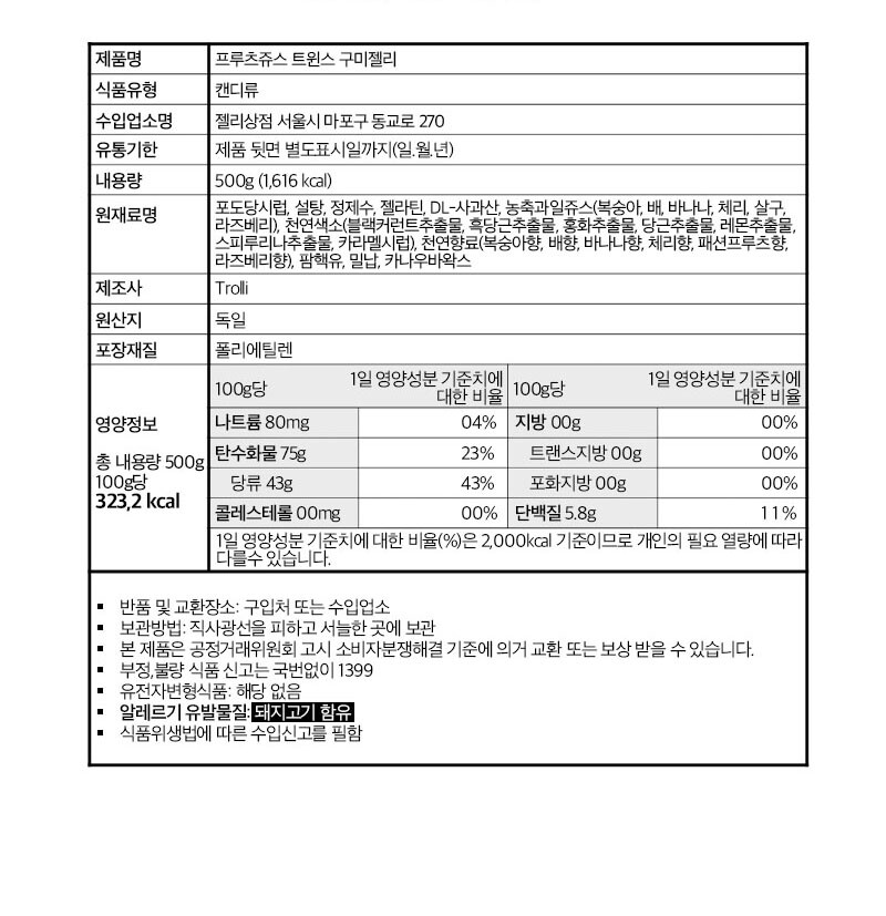 [베렌트레프] 프루츠쥬스 트윈스 구미젤리