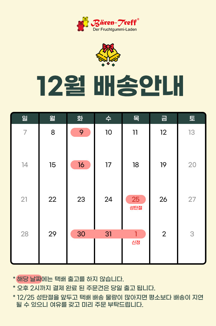- 오후 2시까지 결제 완료 된 주문건은 당일 출고 됩니다.
